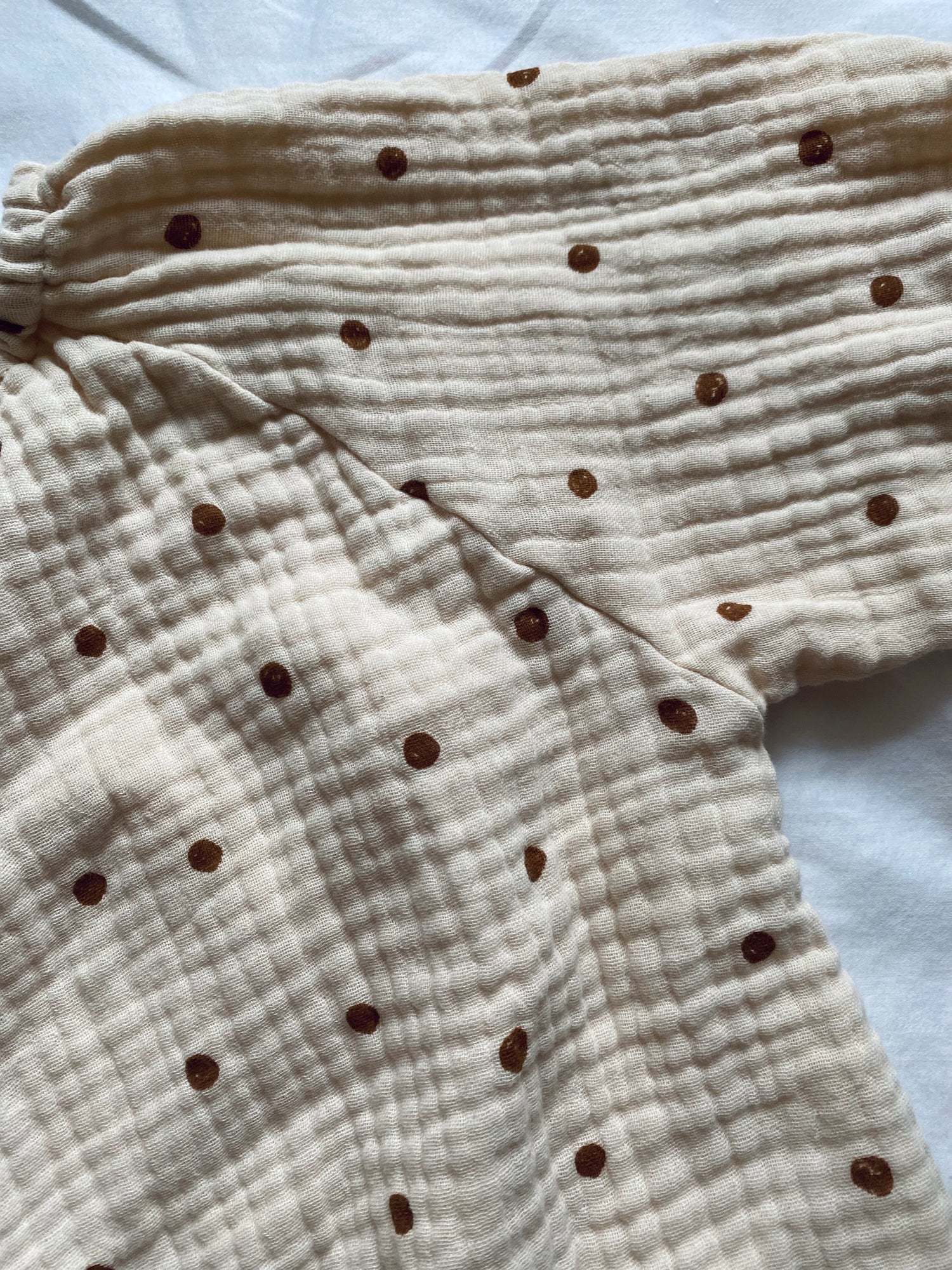 Cotton gauze romper with 3 snap closure at bottom for easy diaper changes in two prints for fall style!